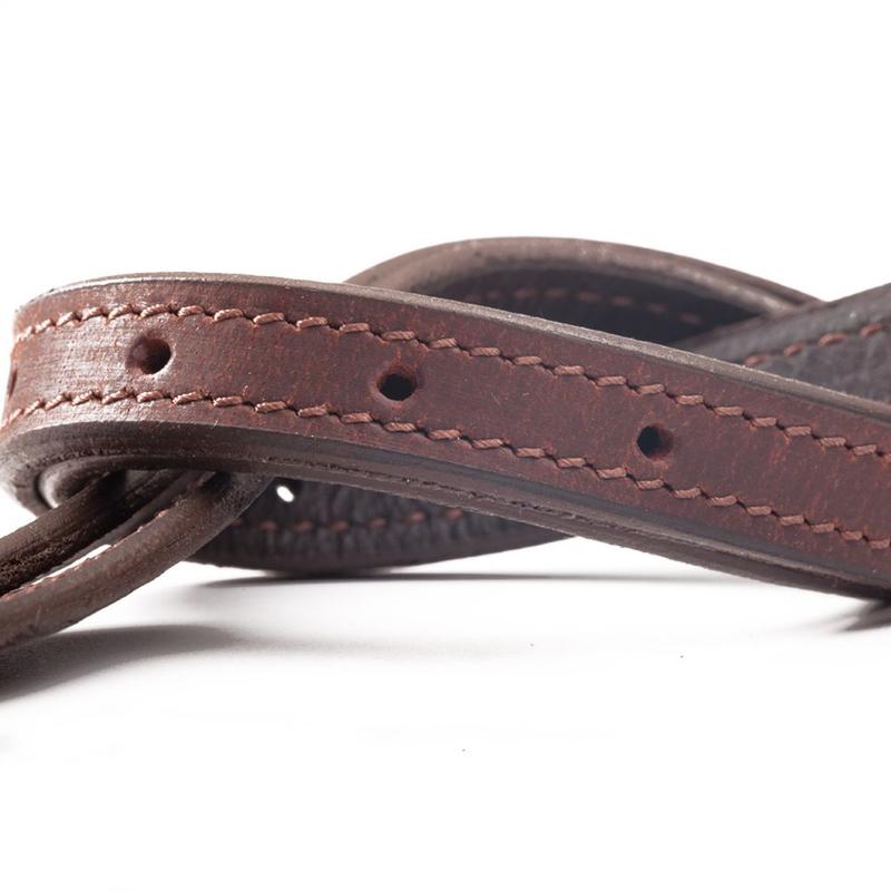 Pasek ostrogowy wykonany z miękkiej, olejowanej skóry z wyściełaną klamrą.