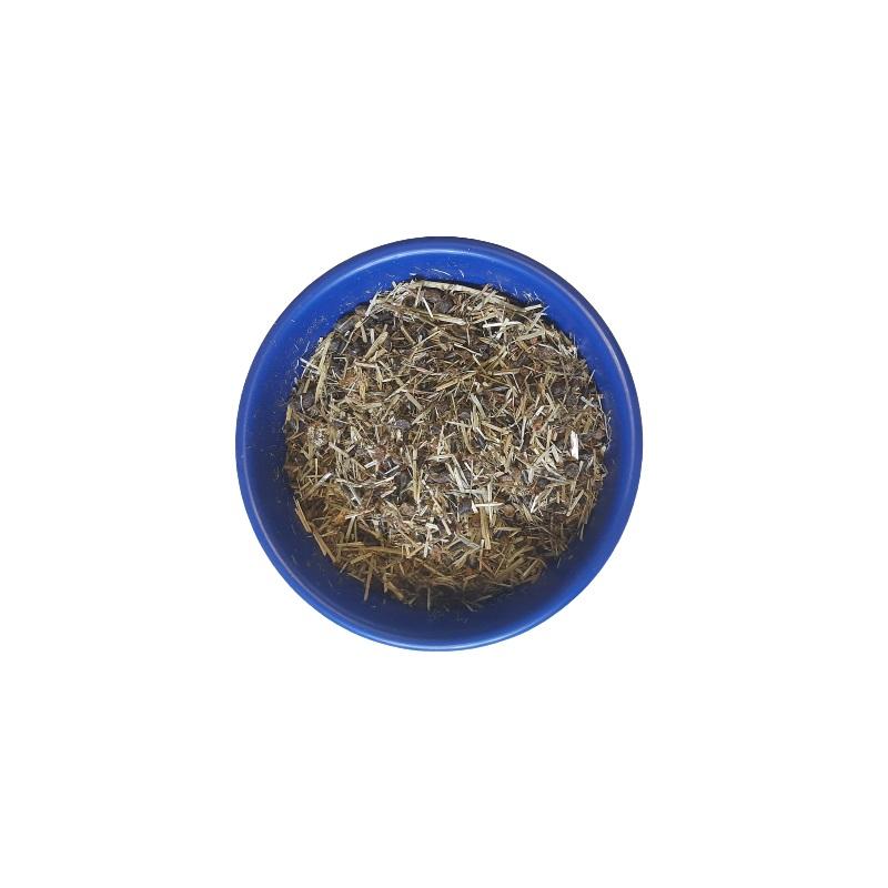 Skład: lucerna, poekstrakcyjna śruta słonecznikowa, łuski nasion słonecznika, tymotka łąkowa, łuski siemienia lnianego, łuski soi, suszony zielony owies, chleb świętojański, płatki z trawy łąkowej i ziół, olej lniany, pulpa z cykorii, wytłoki jabłkowe, makuch z siemienia lnianego, mączka z pestek winogron, olej słonecznikowy, liście mniszka lekarskiego.