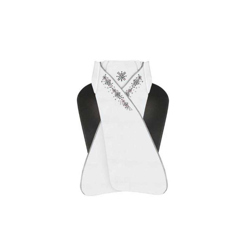 Plastron firmy FP Selene biały z czarno-różowozłotymi kryształkami.