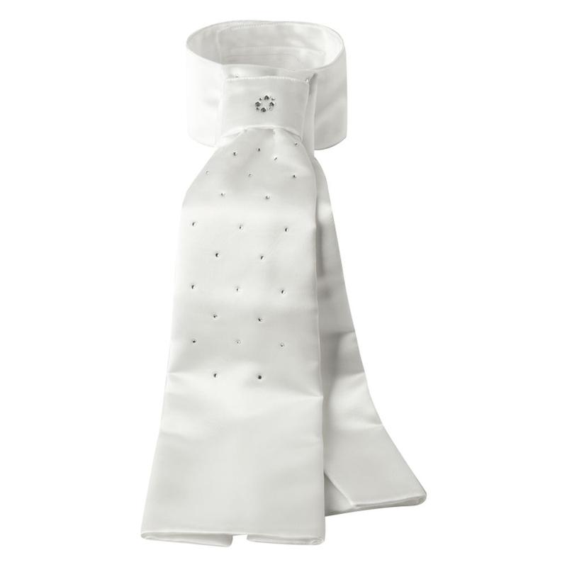 Plastron AnkyPlastron „Refined Stock Tie” ma bufiasty krawat z kontrastowymi wstążkami i zdobieniami z kryształu górskiego, które dodają Twojemu strojowi nieco uroku. Dostarczany z saszetką do prania.