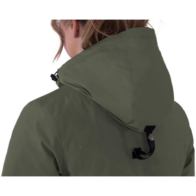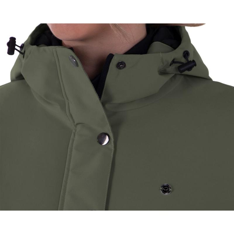 Płaszcz zimowy ocieplany damski Linda firmy QHP. Wykonany z wysokiej jakości materiału poliestrowego. Grube wypełnienie (180g) zapewnia wysoki stopień utrzymania ciepła. Doskonale chroni przed mroźnym wiatrem oraz deszczem (10.000 mm/m2). Dzięki wysokiemu stopniu oddychalności (3000 ml/m 24h) odpowiednia na intensywne treningi. Płaszcz posiada ściągacz w pasie dzięki czemu podkreśla talie, a ściągacze kończące rękaw dodatkowo chroni przed zimnem. Ciepły, oddychający i wodoodporny materiał. Płaszcz został wyposażony w dwustronny zamek z przodu, zwykły zamek z tyłu oraz wiele kieszeni. Obszerny kaptur z dodatkowym mocowaniem..