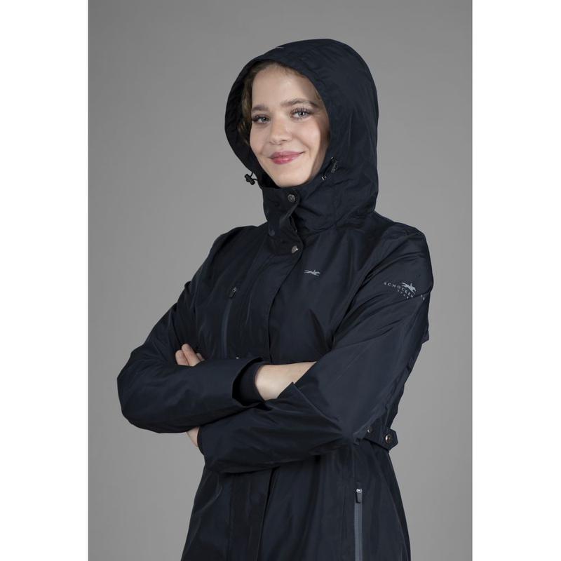 Płaszcz SPKaija marki Schockemöhle Sports to nowoczesny, długi model damski zaprojektowany z myślą o komforcie i funkcjonalności podczas jazdy konnej oraz codziennych aktywności w stajni.