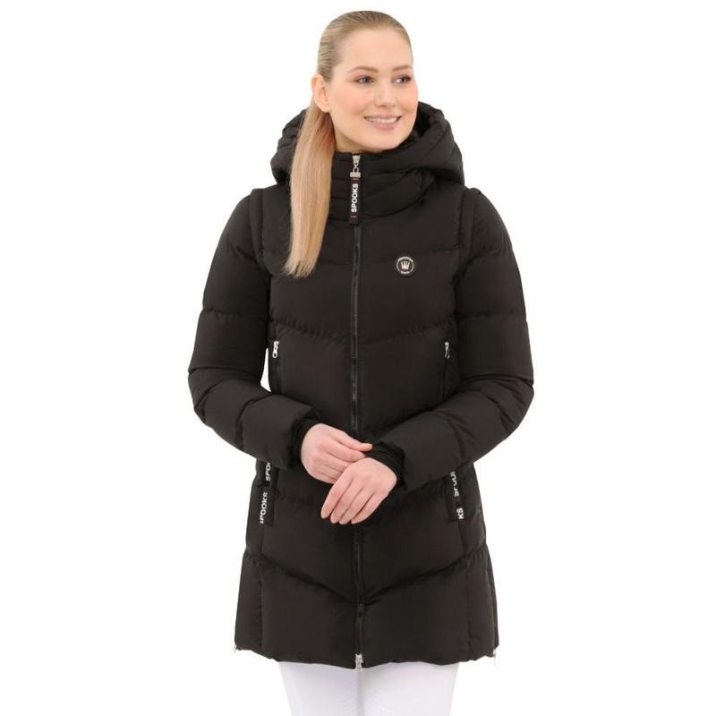 Kurtka firmy Schockemoehle z kolekcji jesień/zima 2025r. Posiada wypełnienie Dupont.Materiał zewnętrzny (5000 mm) i wysoką oddychalność (5000 g/m²/24 h. Wodoodporny zamek. Dół i mankiety wykończone są elastyczną taśmą dla idealnego dopasowania. Regulowany kaptur z ściągaczem i stoperami, który można zapiąć na zatrzask.