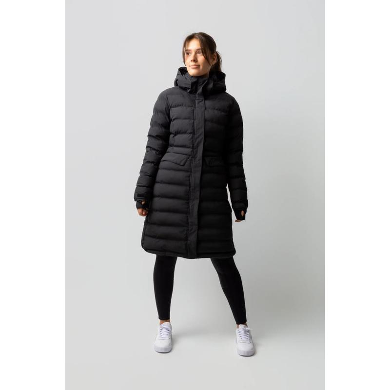Płaszcz Celeste firmy Horze. Jest wyjątkowo wszechstronny: ma odpinany kaptur, regulowaną talię i klapy po bokach, które zgrabnie modelują sylwetkę. Zapinane na zamek kieszenie pod klapami pomieszczą najpotrzebniejsze drobiazgi. Pikowanie z uszczelnianymi na gorąco szwami zapewnia optymalne zatrzymywanie ciepła oraz nieprzemakalność
