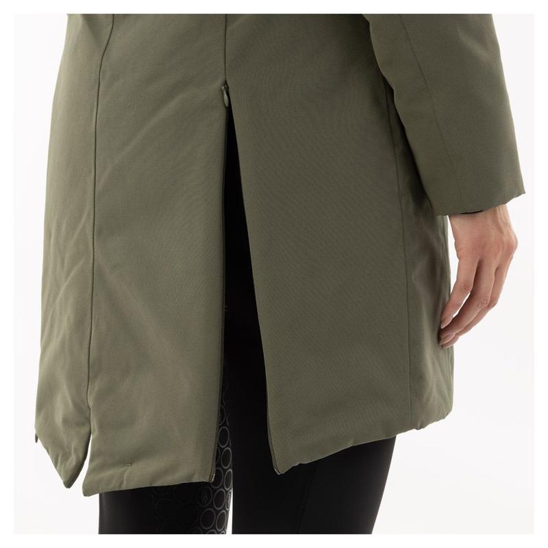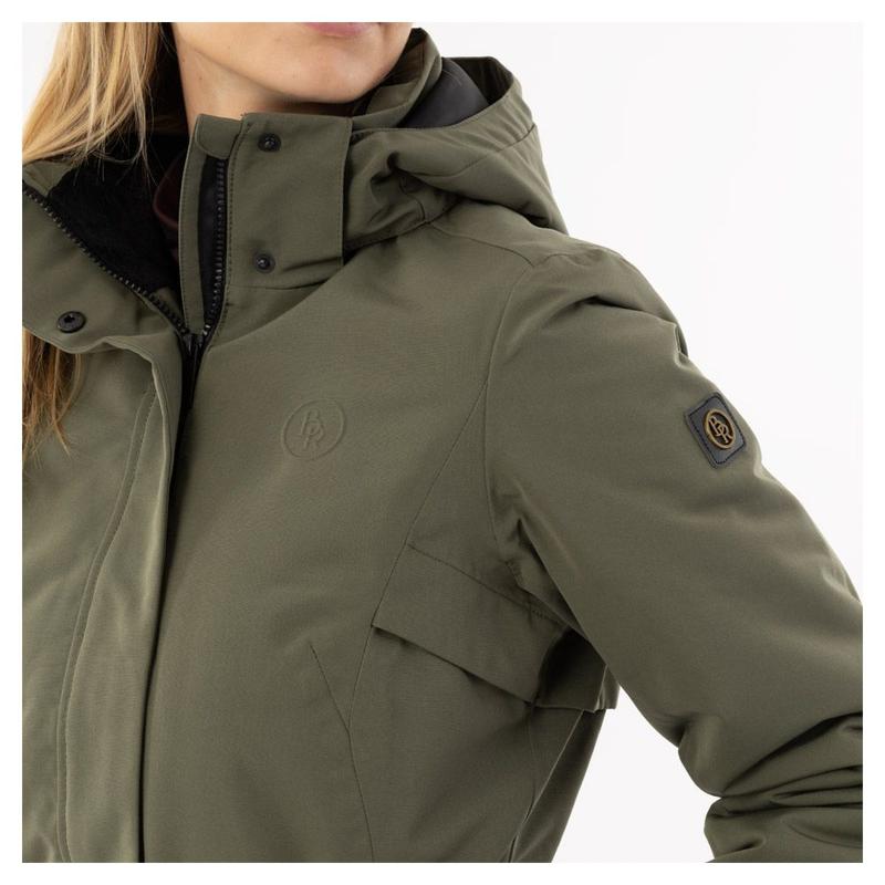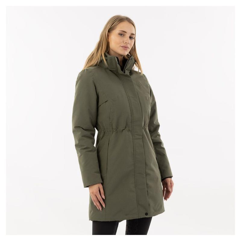 Płaszcz damski zimowy firmy BR. Ocieplany, wodoodporny z regulowaną talią. Można nosić w siodle, dzięki dwóm rozcięciom z tyłu. Posiada dwukierunkowy zamek błyskawiczny z zewnętrzną i wewnętrzną listwą. Wyposażona w wewnętrzną kieszeń zapinaną na zamek.