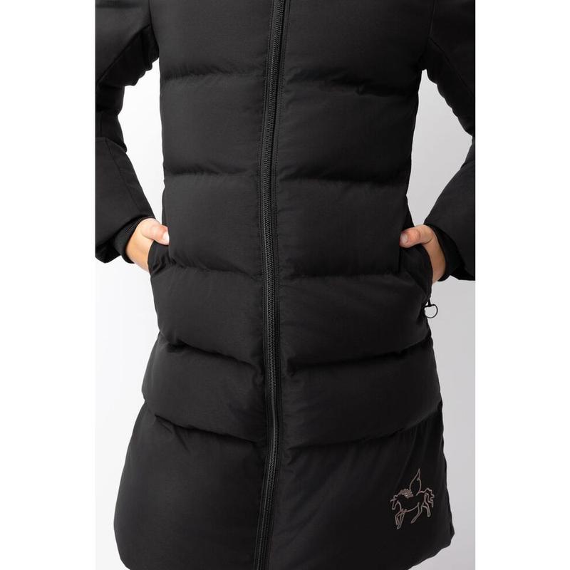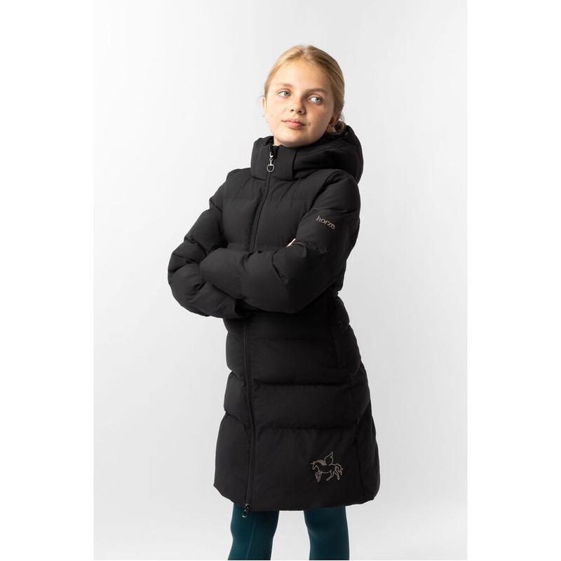 Młodzieżowa kurtka firmy Horze. Wygodna i funkcjonalna idealna na zimę. Posiada ciepłe wypełnienie, wodoodporny i wiatroodporny materiał. Odpinany kaptur. Wyposażona w dwie kieszenie.