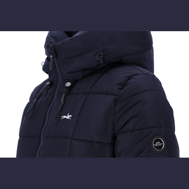 Kurtka firmy Schockemoehle z kolekcji jesień/zima 2025r. Posiada wypełnienie Dupont.Materiał zewnętrzny (5000 mm) i wysoką oddychalność (5000 g/m²/24 h. Wodoodporny zamek. Dół i mankiety wykończone są elastyczną taśmą dla idealnego dopasowania. Regulowany kaptur z ściągaczem i stoperami, który można zapiąć na zatrzask.
