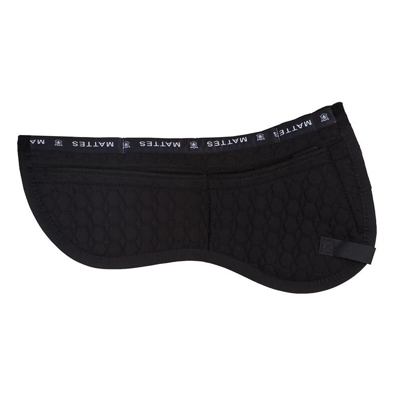 Podkładka Standardowa firmy Mattes. Posiada anatomiczny kształt oraz kieszenie umożliwiające korektę grubości, dzięki temu można dowolnie korygować ułożenie siodła na koniu. Wykonana z neoprenu. Podkładka w komplecie z wkładkami filcami.
