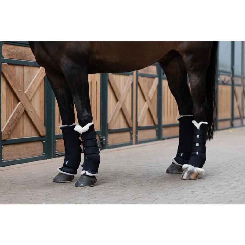Podkładki kołderkowe duże pod bandaże wykonane z wytrzymałej, miękkiej bawełny z mikrofibry, zapinane na funkcjonalne rzepy.Nadają się jako podkład pod bandaże w transporcie i stajni.Zestaw 4 sztuk z praktyczną torbą.Wymiary 45 x 55 cm.