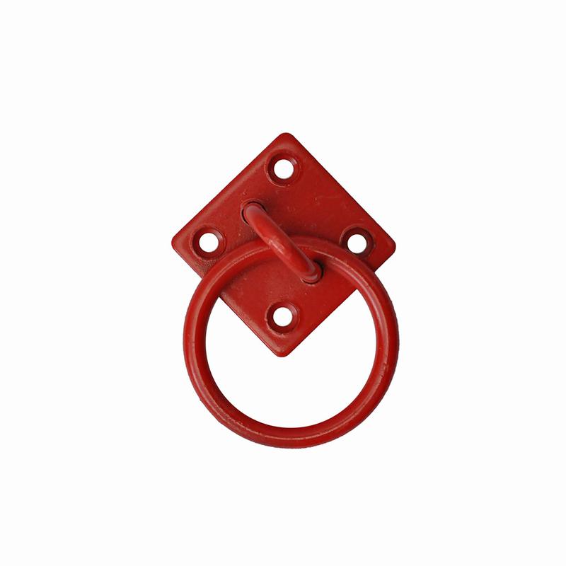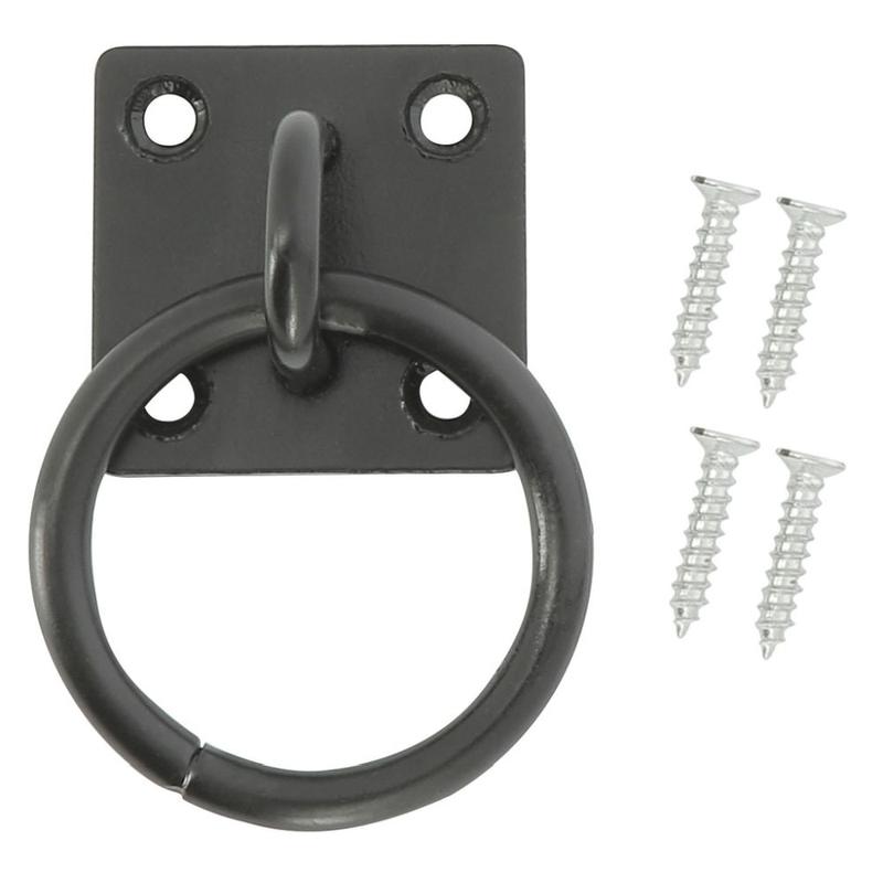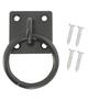Prosty i praktyczny uchwyt: metalowa płytka z kółkiem. Idealna do zamocowania na ścianie stajni lub zewnętrznej stronie przyczepy za pomocą 4 śrub. Materiał: chrom.