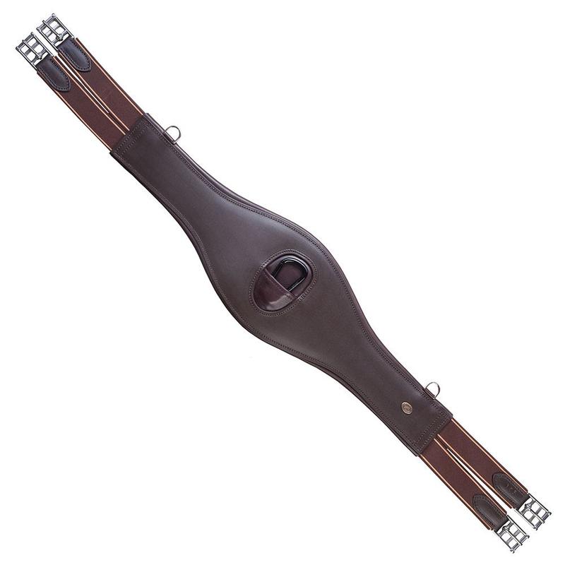 Popręg skórzany skokowy Chandle firmy Parkur. Wykonany z wysokiej jakości skóry bydlęcej z miękkim wypełnieniem zapewniającym komfort użytkowania. Po obu stronach zapinany na gumy, które zapewniają koniowi swobodne oddychanie oraz lepszą stabilizację siodła. Dodatkowo wyposażony w karabińczyk oraz dwa półkółka służące do przypinania napierśnika lub pomocy.