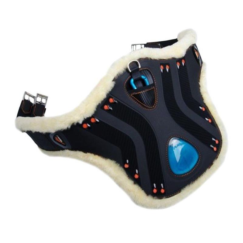 Popręg z fartuchem eDiamond No Kill firmy eQuick. Wykonany z najwyższej jakości materiałów takich jak TPU oraz HLC. Jest bardzo lekki, wytrzymały, elastyczny oraz wodoodporny. Obszyty syntetycznym futerkiem. Posiada technologię eFluidgle, to specjalny bąbelek w powłoce zmniejszający siłę uderzenia końskich nóg o brzuch. Łatwy w utrzymaniu czystości. Możliwość prania w pralce w temperaturze 30 stopni Celsjusza.
