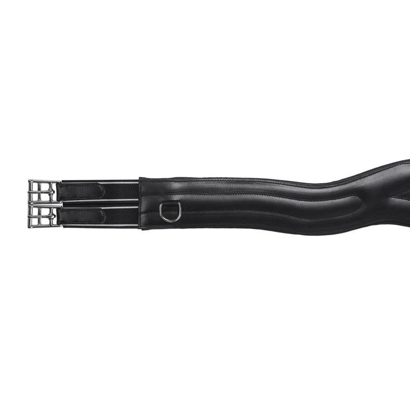 Popręg wykonany z miękkiej wysokiej jakości skóry naturalnej z dodatkiem elastanu. Anatomiczny kształt zapewnia optymalne rozłożenie nacisku. Posiada trzywarstwowe, elastyczne gumy oraz sprzączki z nierdzewnej stali po obydwu stronach.