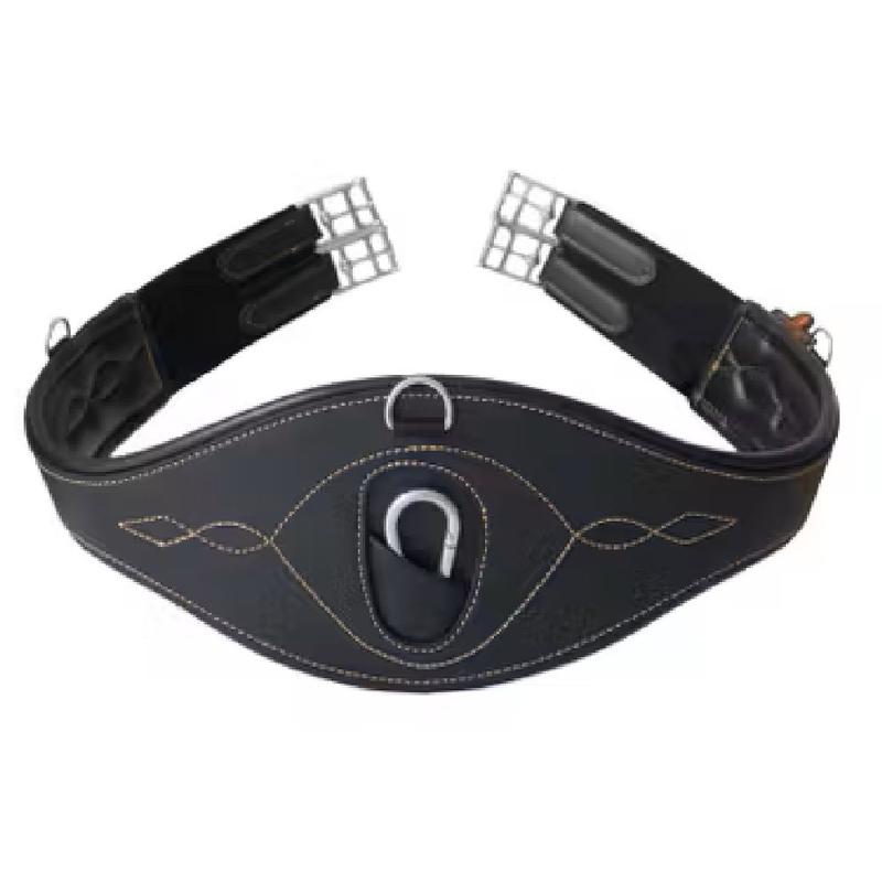 Popręg pogumy na obu końcach, aby wyrównać ciśnienie, a także trzy pierścienie D, aby pomieścić sprzęt szkoleniowy i klamrę do przymocowania napierśnika do popręgu. Gumy są bardzo mocne i pozostają sztywne, ponieważ są wykonane z trzech podwójnych warstw. Anatomic Girth ma ochronną wewnętrzną warstwę EVA. Popręg wykonany jest ze sztucznej skóry, dzięki czemu jest w 100% przyjazny dla zwierząt i łatwy w utrzymaniu. Nie zmienia koloru i nie ulega łatwo uszkodzeniu.