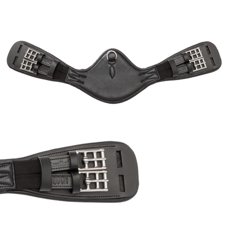 Popręg ujeżdżeniowy Memory Foam marki Kavalkade, wykonany z miękkiej pianki memory foam, która optymalnie dopasowuje się do ciała konia, a po użyciu powraca do swojego pierwotnego kształtu. Sprzączki ze sprężynami ułatwiają podpięcie popręgu. Pośrodku kółko D do przypinania pomocy Klamry ze stali nierdzewnej Z elastycznymi wstawkami po obu stronach.