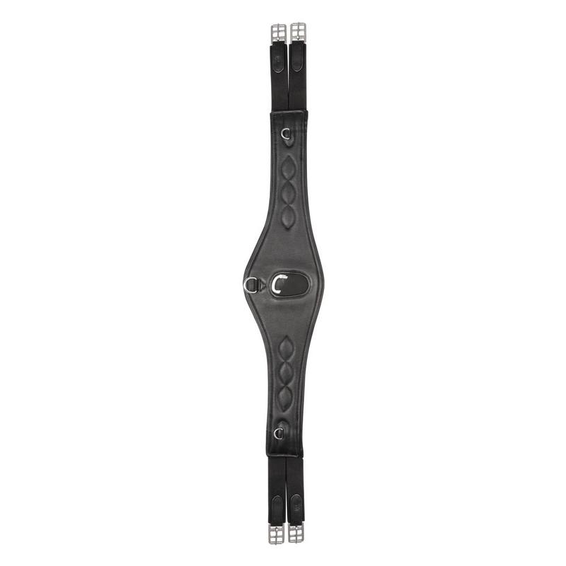 Popręg wykonany z miękkiej wysokiej jakości skóry naturalnej z dodatkiem elastanu. Anatomiczny kształt zapewnia optymalne rozłożenie nacisku. Posiada trzywarstwowe, elastyczne gumy oraz sprzączki z nierdzewnej stali po obydwu stronach.
