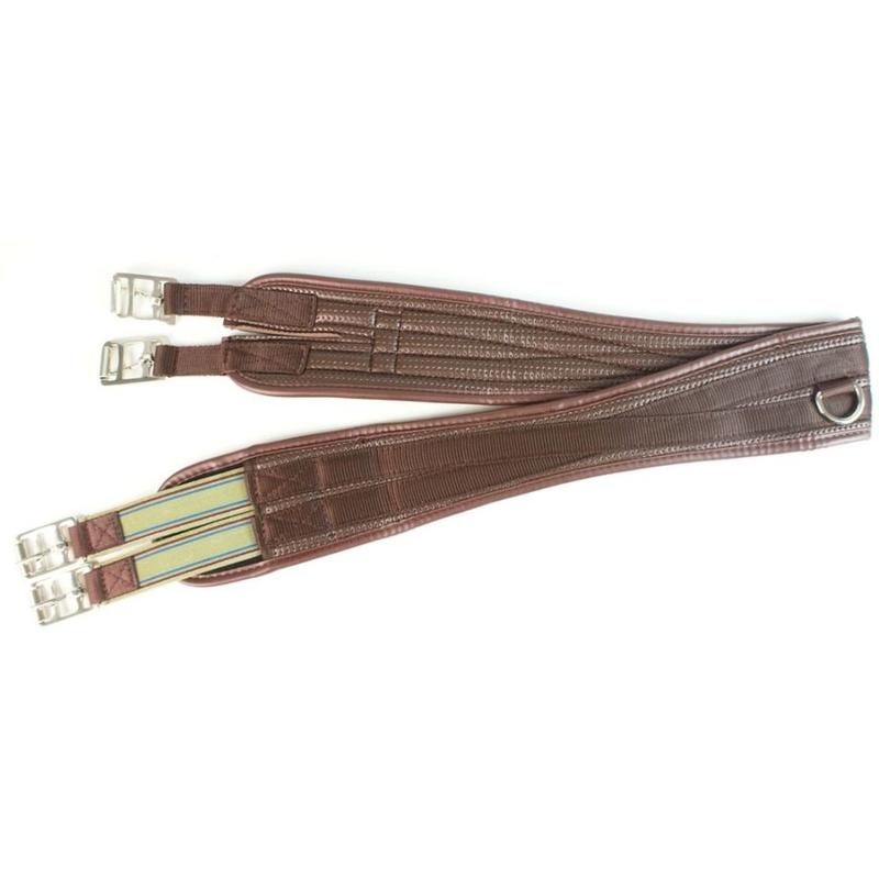 Popręg wykonany z miękkiej wysokiej jakości skóry naturalnej z dodatkiem elastanu. Anatomiczny kształt zapewnia optymalne rozłożenie nacisku. Posiada trzywarstwowe, elastyczne gumy oraz sprzączki z nierdzewnej stali po obydwu stronach.