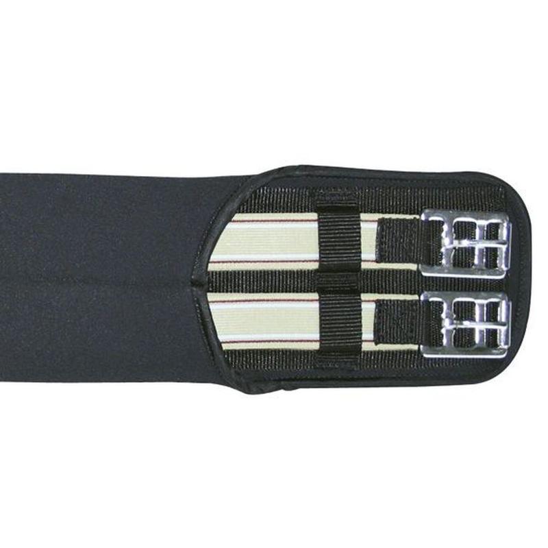 Popręg ujeżdżeniowy, neoprenowy firmy Start. Elastyczny popręg zakończony z jednej strony mocnymi gumami. Wyposażony w przedłużoną częścią ze szlufkami na paski przystuły oraz klamry. Druga strona natomiast zakończona tylko klamrami. Zastosowano klamry rolkowe, które ułatwiają zapinanie. Prosty w czyszczeniu.
