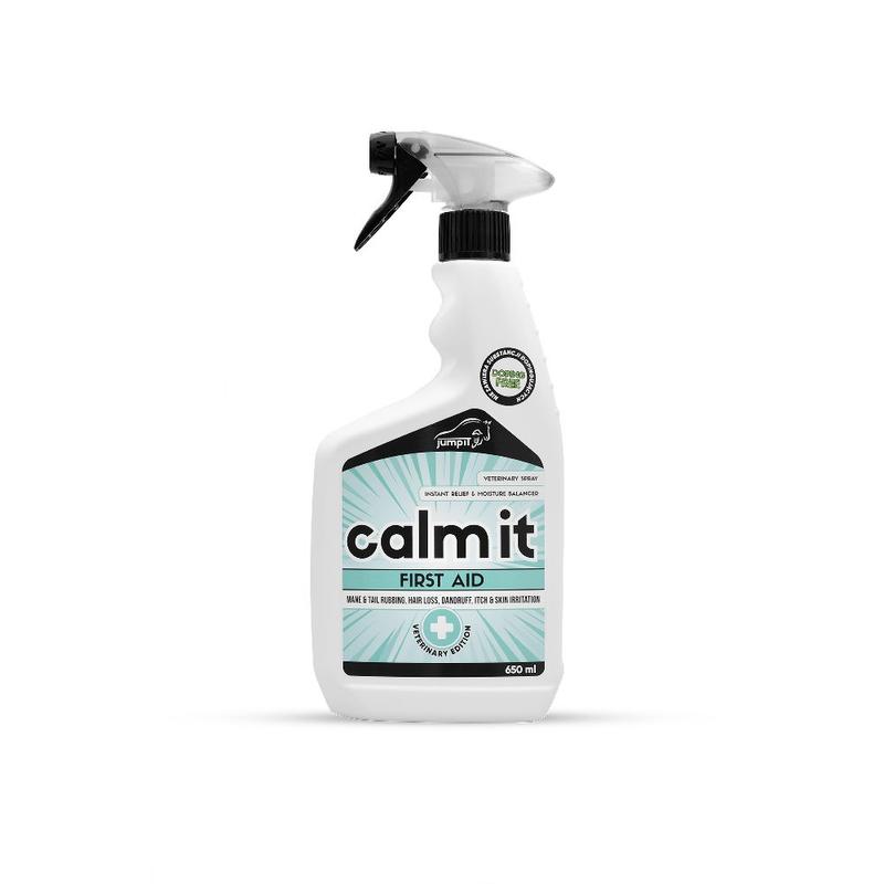 Jumpit Calm It to preparat na swędzenie i problemy dermalne skóry dzięki zawartym własciwościom aloesu, arniki, nagietka, gumy z drzewa tara, prowitamin B3, allatoniny, mocznika, siarczanu, miedźi, olejku lawendy o silnych właściwościach kojąco-łagodzących, przeciwzapalnych antyseptycznych i ochronnych eliminuje swędzenie i przyczyny wycierania grzywy i ogona. Oryginalna formuła preparatu calm it dzięki połączeniu 9 wyselekcjonowanych substancji aktywnych o silnych właściwościach kojąco - łagodzących, przeciwzapalnych, antyseptycznych i ochronnych, eliminuje swędzenie i dermalne przyczyny wycierania grzywy i ogona poprzez przywrócenie prawidłowego funkcjonowania zaburzonej bariery hydrolipidowej skóry. Zapewniając odpowiednie nawilżenie naskórka oraz niezbędny poziom składników odżywczych preparat calm it zapewnia prawidłowy mechanizm biomechaniczny korneocytów, czego odpowiedzią jest redukcja pękania, łuszczenia i napięcia skóry. Dobra kondycja skóry zmniejsza też jej podatność na zmiany w rezydentnej mikroflorze oraz niweluje infekcje powodowane przez patogeny, powodujące swędzenie oraz negatywnej reakcję zwierząt jaką jest wycieranie sierści, grzywy i ogona, a także pojawienie się zmian skórnych takich jak łupież, zaczerwienienie, drobne rany czy też wypadanie włosów.