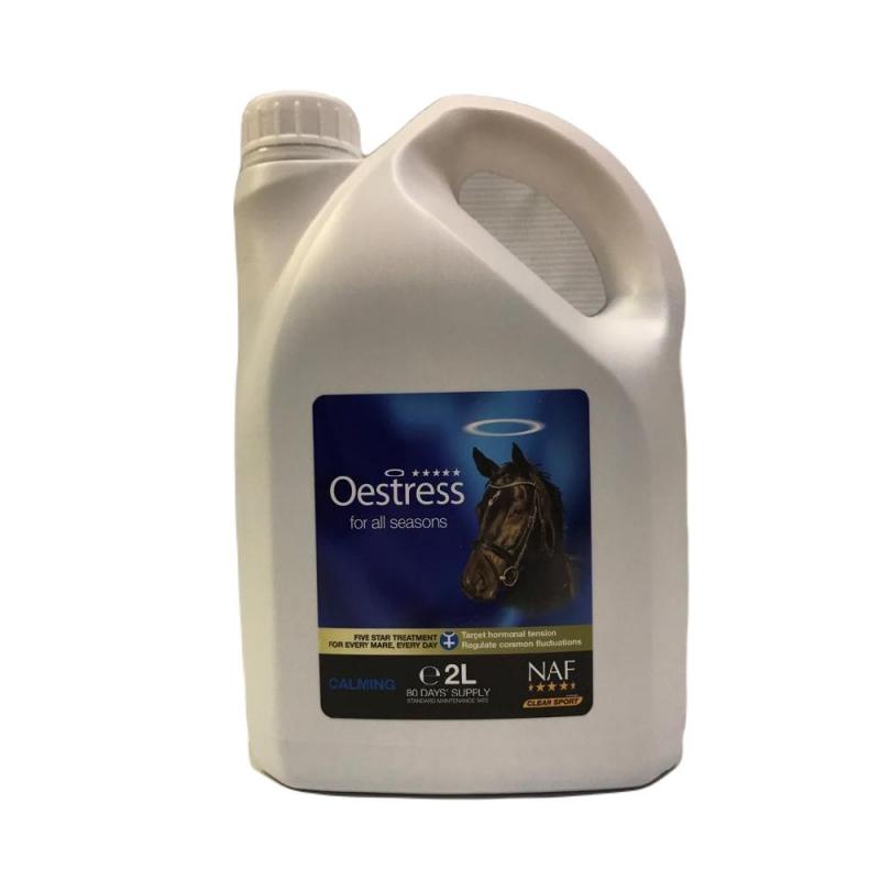 Oestress firmy NAF to innowacyjny środek przeznaczony dla klaczy, stworzony z naturalnych składników mający na celu utrzymać prawidłową równowagę psychiczną klaczy. Idealnie sprawdza się dla klaczy z zaburzeniami równowagi hormonalnej m.in. huśtawka nastrojów, nieprzewidywalność w reakcjach, agresja, nadwrażliwość, depresja bądź spadek formy i kondycj. Naturalny skład, który zawiera ten produkt - przeciwutleniacze oraz starannie dobrane zioła z dodatkiem magnezu pomagają klaczom odzyskać spokój i równowagę.