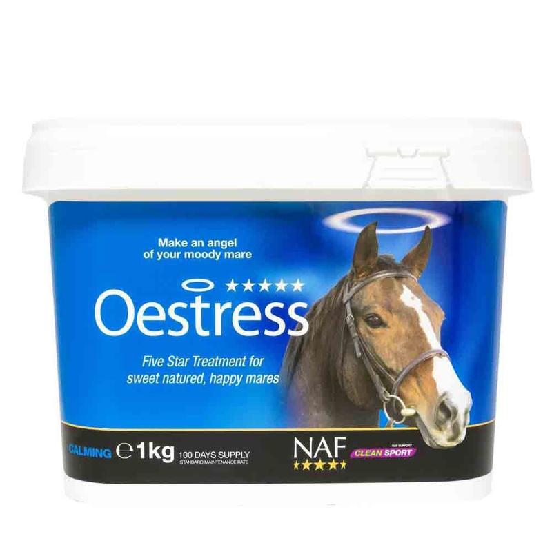 Oestress firmy NAF to innowacyjny środek przeznaczony dla klaczy. Oestress firmy NAF to innowacyjny środek przeznaczony dla klaczy, które również tak jak ogiery cierpią na zaburzenia równowagi hormonalnej. Objawia się to m.in. huśtwką nastrojów, agresjia, nieprzewidywalność w reakcjach, nawrażliwość, depresja, spadek formy oraz kondycji. Preparat stworzony z naturalnych składników w której w skład wchodzą przeciwutleniacze i starannie dobrane zioła z dodatkiem magnezu dzięki którym klacz odzyskuje spokój oraz utraconą trównowagę.