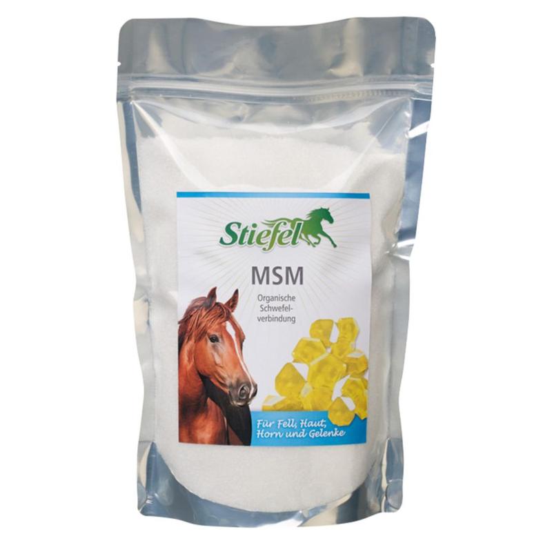 MSM Stiefel preparat wzmacniający stawy. W swoim składzie zawiera ograniczony związek siarki, który działa wzmacniająco w przypadku problemów ze stawami. Wpływa także pozytywnie na stan skóry, sierści oraz poprawia stan kopyt i przyśpiesza ich wzrost.