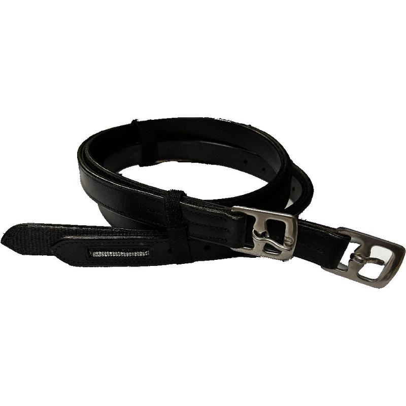 Puśliska Stella firmy HKM. Wykonane z mocnej, wysokiej jakości skóry, podszytej taśma nylonową. Wyposażone w sprzączki ze stali nierdzewnej. Puśliska zdobione kamieniami syntetycznymi.