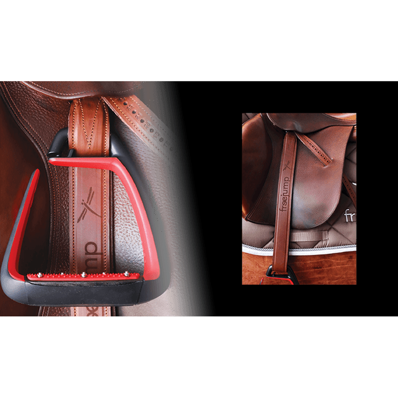 Puśliska Progrip firmy Freejump dedykowane dla strzemion tej firmy. Wykonane z wysokiej jakości materiału imitującego skórę, dlatego puśliska nie rozciągają się i można je niezwykle doskonale regulować. Posiadają poszerzoną część, która eliminuje możliwość wykręcenia się strzemienia i utrzymuje je w stabilnym położeniu. Dodatkowo po wewnętrznej stronie posiadają montowane na rzep wkładki – skórzane oraz ogumowane, uniemożliwiające poruszanie się puślisk. Poprzez zwiększenie komfortu jazdy puśliska szybko zostały docenione przez światową czołówkę świata jeździeckiego. Rozmiary: S – do 150 cm wzrostu jeźdźca, M – od 150 do 175 cm wzrostu jeźdźca, L – powyżej 175 cm wzrostu jeźdźca.