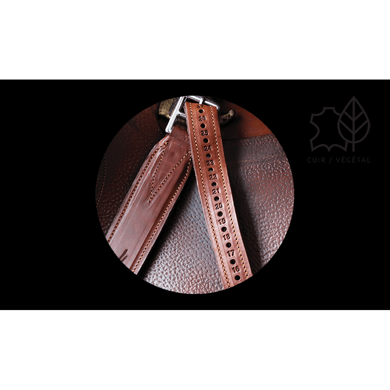 Mocne skórzane puśliska. Posiadają podwójny szew zapobiegający rozciąganiu się skóry. Okucia wykonane ze stali nierdzewnej.