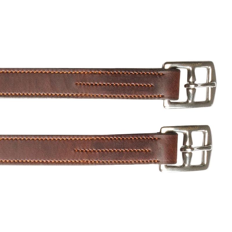 Puśliska z olejowanej skóry firmy Kavalkade miękko przeszywane. Wykonane są ze skóry olejowanej na wierzchu i miękkiej na spodzie. Olejowana skóra sprawia, że skóry są trwalsze, zachowując jednocześnie elastyczność dzięki miękkiej skórze. Wnętrze wykonano z nylonu, co zapewnia im wyjątkową stabilność. Zakrzywiona klamra pozwala na wygodniejsze dopasowanie. Z subtelnym ozdobnym haftem na końcu paska.