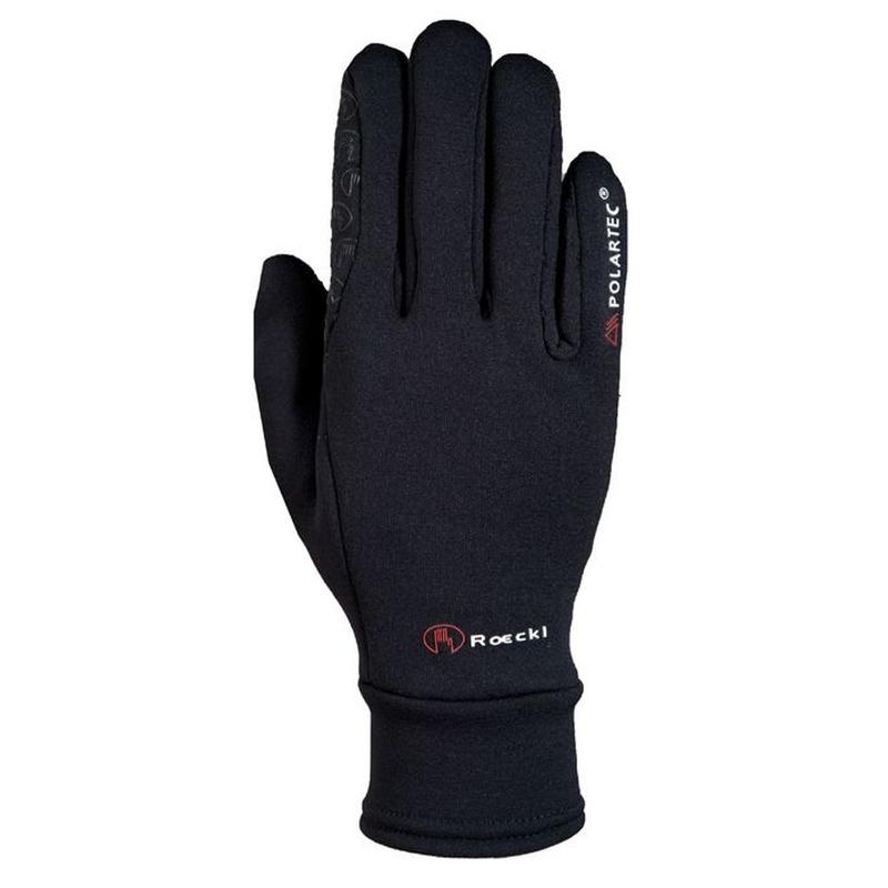 Rękawiczki firmy Roeckl Sports z kolekcji zimowej Warwick o szczególnie smukłym i wygodnym kroju. Wykonane są z wyjątkowo elastycznego i ciepłego materiału. Model zapewnia doskonałą przyczepność wodzy dzięki silikonowanej wewnętrznej części rękawiczki oraz obszarowi między palcem serdecznym a małym, w którym również zastosowano materiał silikonowy. Dodatkowym atutem tych rękawiczek jest estetyczne logo Roeckl umieszczone na nadgarstku.