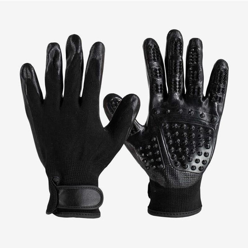 Para praktycznych rękawic to doskonały element wyposażenia skrzynki na szczotki Twojego konia. Nylonowe rękawice posiadają gumowe wypustki, dzięki którym łatwo i skutecznie wyczyścisz i wymasujesz konia. Idealne zarówno do czyszczenia jak i pielęgnacji, rękawice można stosować na sucho i na mokro. Przy okazji zapewniają ochronę dłoni. Masaż takimi rękawicami to miłe, relaksacyjne doświadczenie dla Twojego konia.
