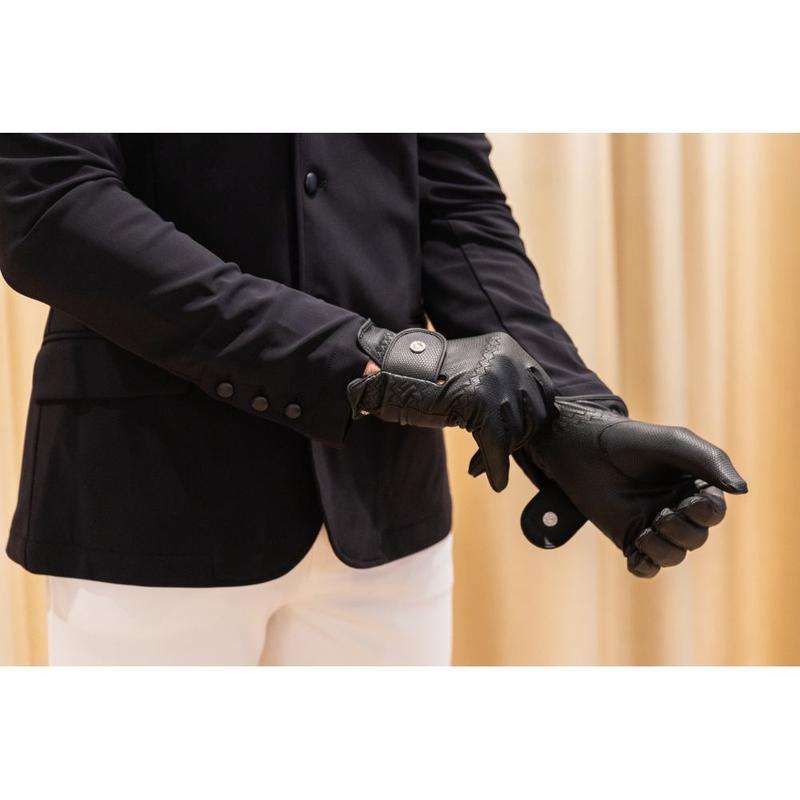 Skórzane rękawiczki do jazdy konnej firmy Kentucky. Wyjątkowe rękawiczki jeździeckie ze skóry naturalnej, zaprojektowane z myślą o jeźdźcach, którzy cenią sobie precyzję, komfort i elegancki wygląd. Wykonane z gładkiej, miękkiej skóry licowej, idealnie dopasowują się do dłoni, zapewniając pewny chwyt wodzy oraz doskonałe czucie w każdej sytuacji.Model ten jest szczególnie polecany na chłodniejsze dni — chroni dłonie przed wiatrem, zachowując przy tym maksymalną elastyczność i wygodę użytkowania. Subtelne przeszycia oraz klasyczny czarny kolor nadają im profesjonalny, stylowy charakter.
