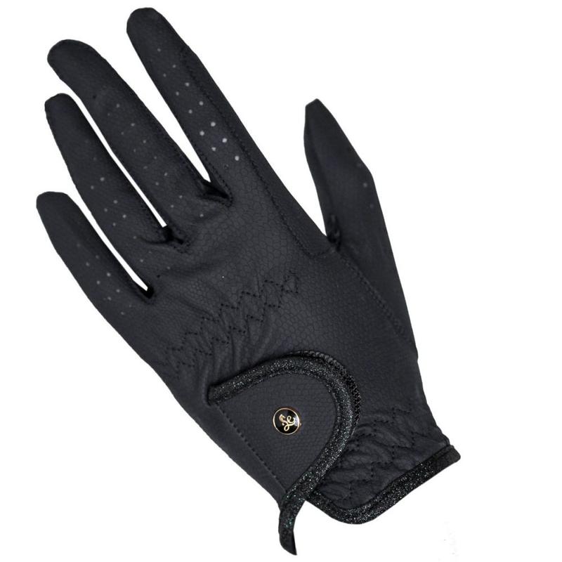 Rękawiczki firmy Lovequestrian.Wykonane z wysokogatunkowego materiału typu "Grip" posiadającego właściwości antypoślizgowe. Zapewniają dobrą przyczepność do wodzy. Starannie uszyte z dbałością o szczegóły. Zapinane na mocny rzep.Na zapięciu posiadają subtelny nadruk z nazwą producenta.