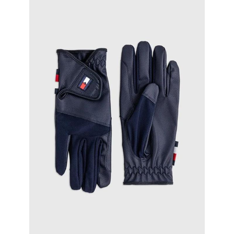 Rękawiczki zimowe wykonane z tkaniny Polartec. Dobrze utrzymują ciepło, są oddychające i rozciągliwe. Błyskawicznie odprowadzają wilgoć, są odporne na ścieranie i zachowują swój kształt. Ozdobione złotymi nadrukami. Cała wewnętrzna strona dłoni pokryta jest silikonowym wzorem ułatwiającym trzymanie wodzy. Idealny wybór na zimowe treningi.