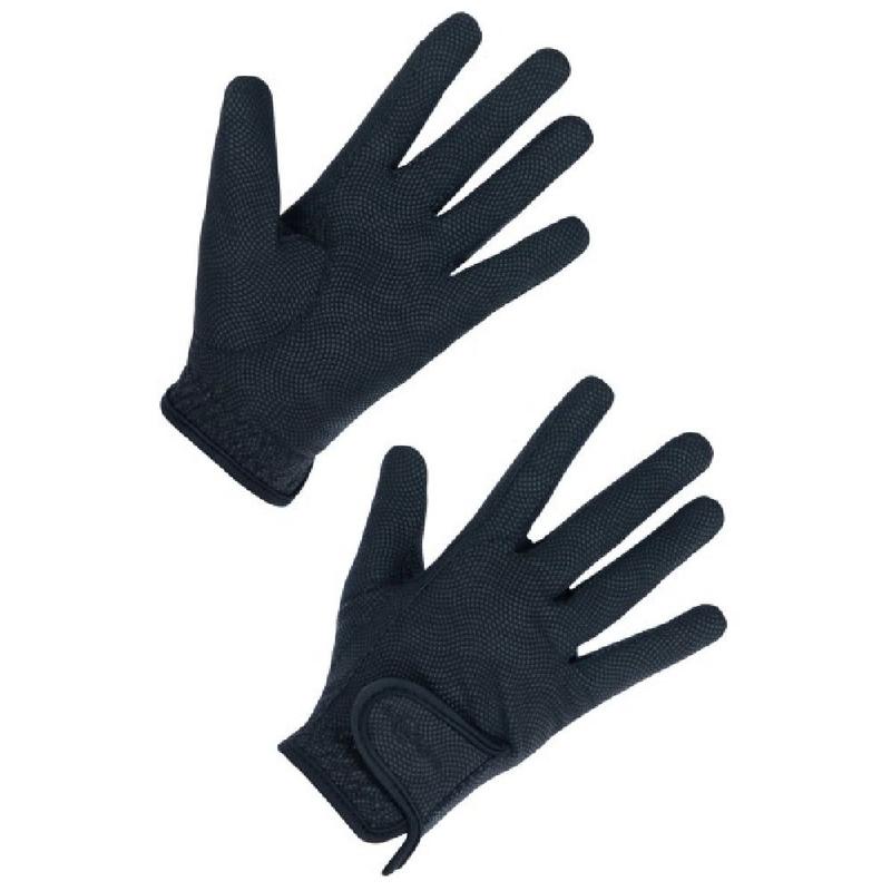 Zimowe rękawiczki wykonane z ciepłego polaru w kolorze czarnym. W śródręczu wszyta wstawka z silikonowym printem, która zapewnia stabilny chwyt wodzy.