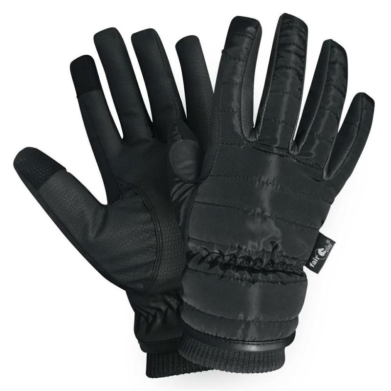 Zimowe rękawiczki wykonane z ciepłego polaru w kolorze czarnym. W śródręczu wszyta wstawka z silikonowym printem, która zapewnia stabilny chwyt wodzy.