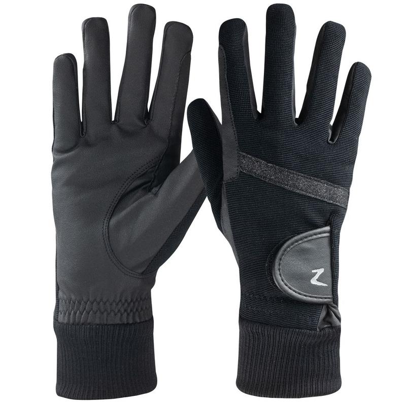 Zimowe rękawiczki wykonane z ciepłego polaru w kolorze czarnym. W śródręczu wszyta wstawka z silikonowym printem, która zapewnia stabilny chwyt wodzy.