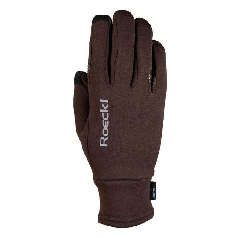 Rękawiczki firmy Roeckl są KOMPATYBILNE Z EKRANEM DOTYKOWYM, dzięki czemu możesz odbierać połączenia na smartfonie bez konieczności zdejmowania rękawiczek. Kciuk i palec wskazujący zostały zaprojektowane przy użyciu wyrafinowanego cięcia 3D, aby umożliwić szybsze i łatwiejsze korzystanie z ekranu dotykowego bez uszczerbku dla komfortu noszenia.Dzięki ekskluzywnemu COMFORT-CUT firmy ROECKL dodatkowe przycinanie palca wskazującego nie jest wymagane. Tył dłoni i dłoń wykonane są z ciepłego, miękkiego i szczególnie elastycznego Polartec® Power Stretch® Pro. Szczególnie ciężka jakość materiałów gwarantuje dodatkowe ciepło, a płaskie szwy zapewniają większy komfort noszenia i przyczepność. Wygodny i piękny: dłoń z niezliczonymi silikonowanymi małymi logo ROECKL zapewnia doskonały chwyt wodzy. Obszar pomiędzy palcem serdecznym a małym, czyli część rękawicy stykająca się z wodzami, posiada dodatkowe silikonowe wzmocnienie. Uchwyt do wciągania ułatwia zakładanie rękawic. Posiadają odblaskowe elementy.