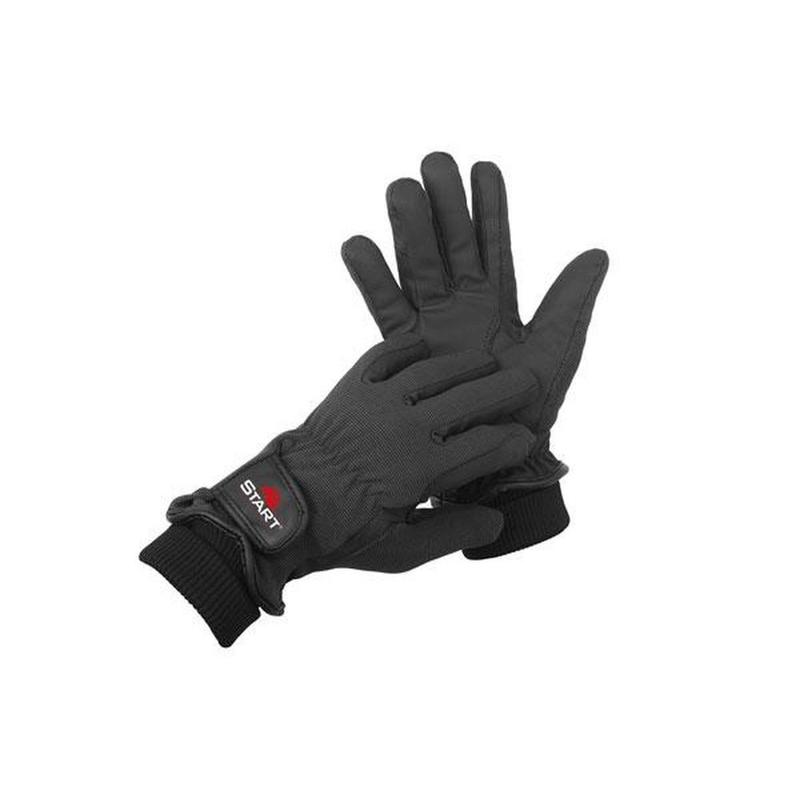 Zimowe rękawiczki wykonane z ciepłego polaru w kolorze czarnym. W śródręczu wszyta wstawka z silikonowym printem, która zapewnia stabilny chwyt wodzy.