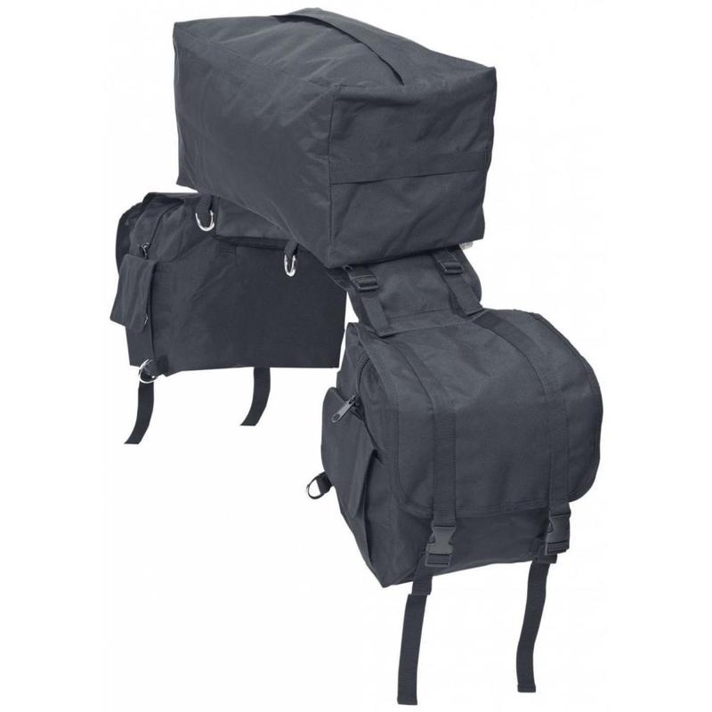Sakwa 3w1 firmy Busse. Wykonana z wodoodpornego materiału, odpornego na zdarcia. Przypinane na wytrzymałe zamki. Posiadają kółka oraz klamry do mocowania. Wymiary: 25x18x28 i 42x23x23 cm.