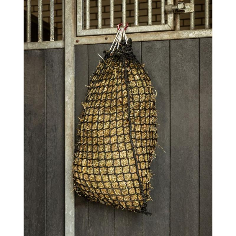Siatka na siano firmy QHP. Wykonany z wytrzymałego nylonu. Posiada małe oczka 3cm, dzięki czemu wydłuża czas pobierania pokarmu przez konia, zapobiegając przejadaniu się.