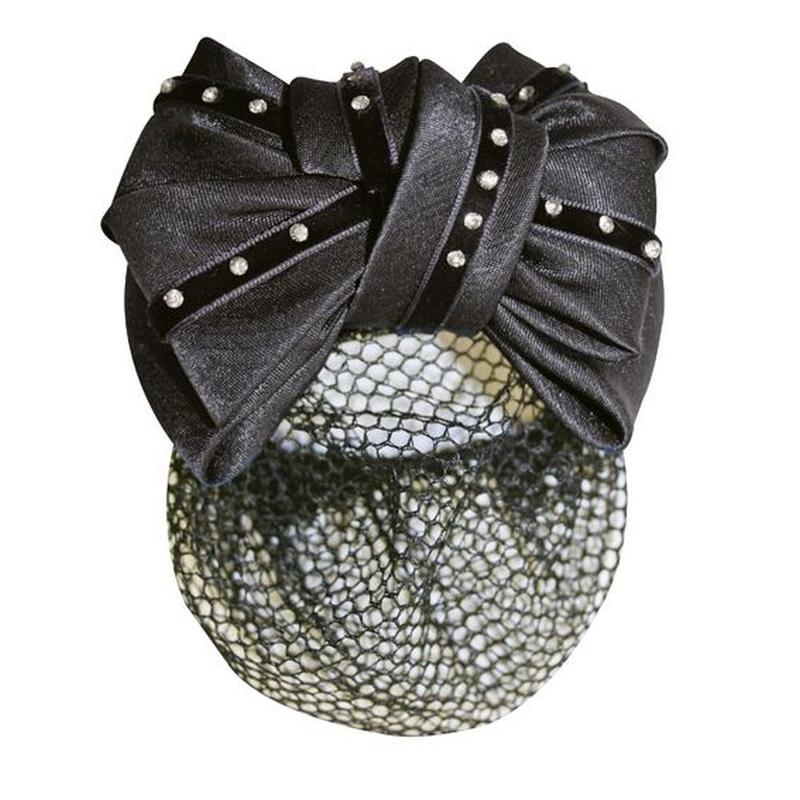 Siatka na włosy z kokardą z diamencikami czarna