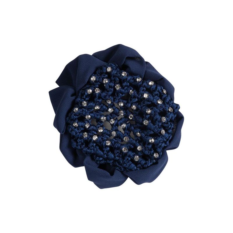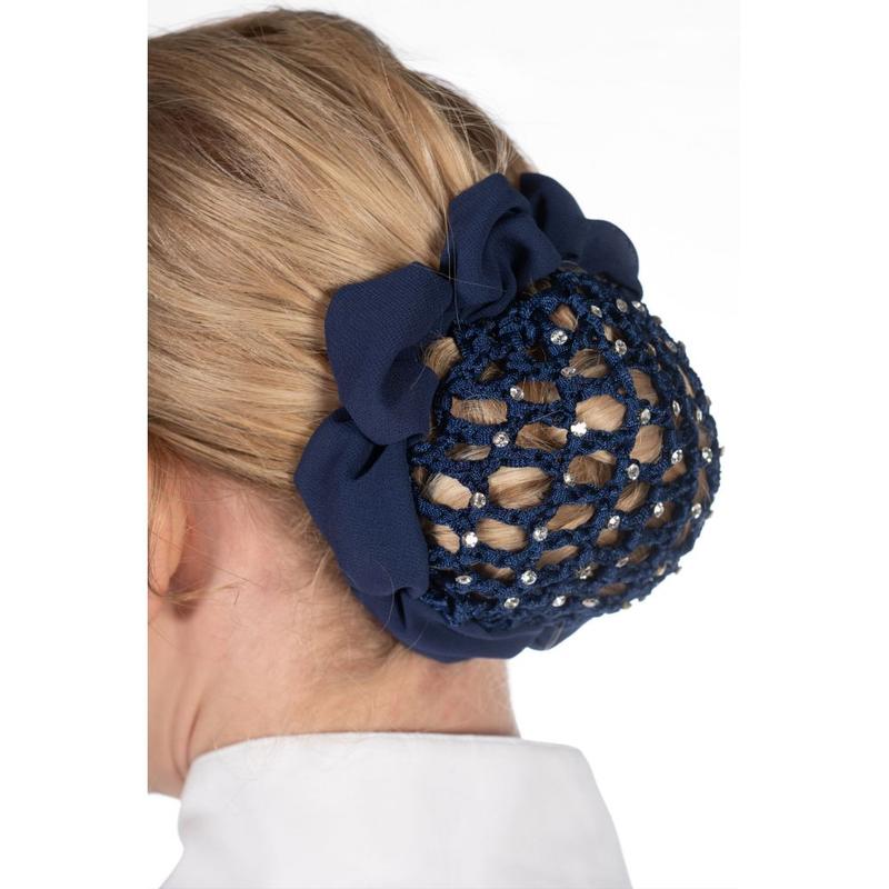 Siatka na włosy firmy HKM. Zdobiona kokardkami i zdobiony eleganckimi kamyczkami. Zintegrowana gumka do włosów.