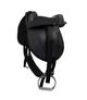 Syntetyczne siodło na kucyka firmy QHP. Dodatkowo w zestawie aluminiowe strzemiona oraz nylonowy popręg. Długość siodełka 29cm, długość siedziska 21cm. Posiada uchwyt z przodu.