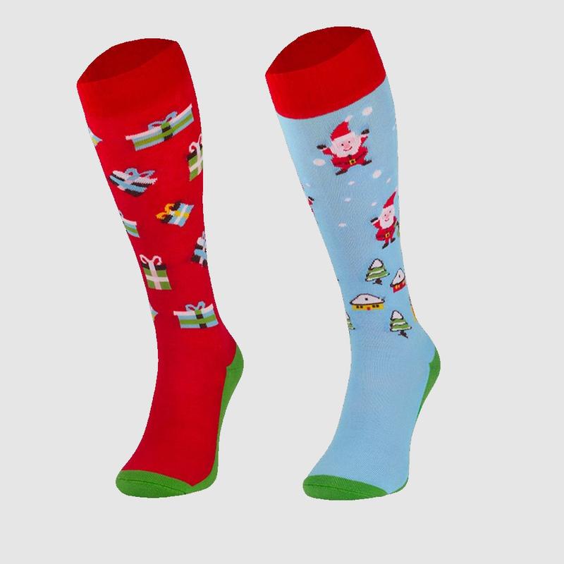 Skarpety bożonarodzeniowe Comodo Mikołaj i prezenty czerwono-błękitne