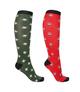 Skarpety bożonarodzeniowe QHP 2-pak zielone z elfami i czerwone w reniferami