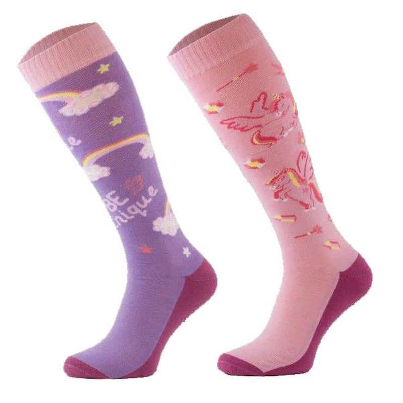 Skarpety Comodo bawełna wzór fioletowo-różowe jednorożce i tęcza
