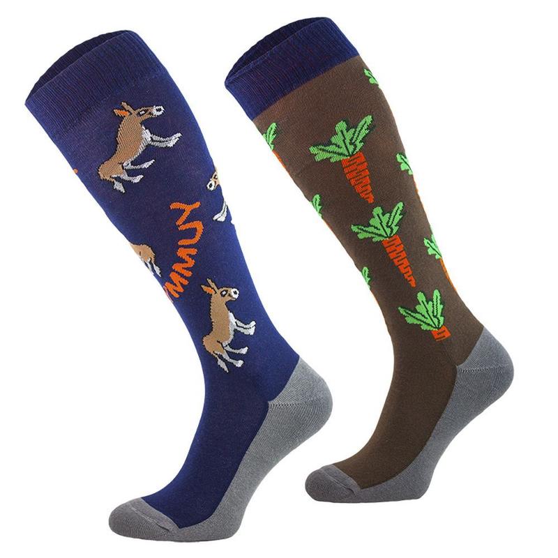 Skarpety Comodo bawełna wzór granatowo-brązowe osły i marchewki