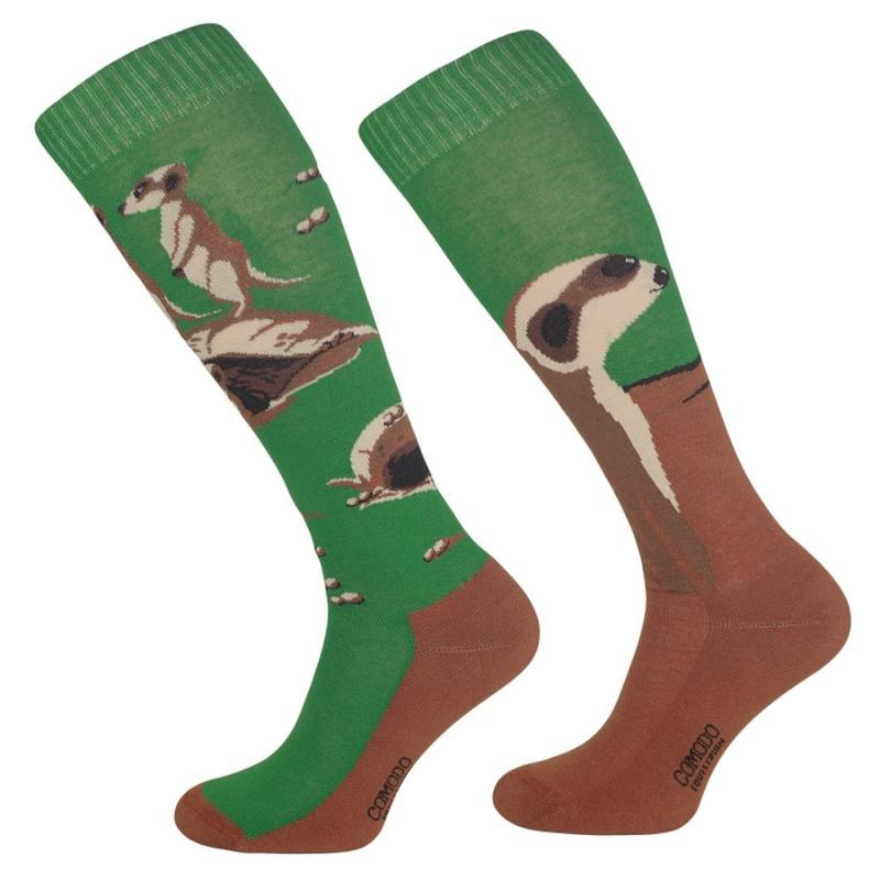 Skarpety Comodo bawełna wzór zielono-brązowe w surykatki